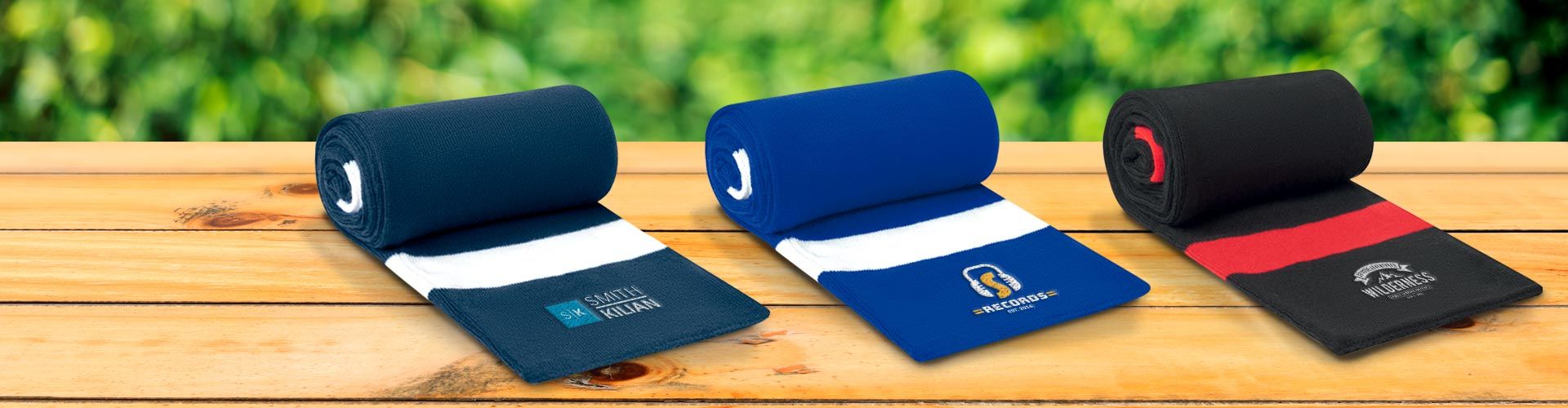 Create the ultimate 1st impression with this customised woolly scarf. Woven in acrylic, choose pantone colours, stripes width and number, single or double layer weave and decoration methods.
