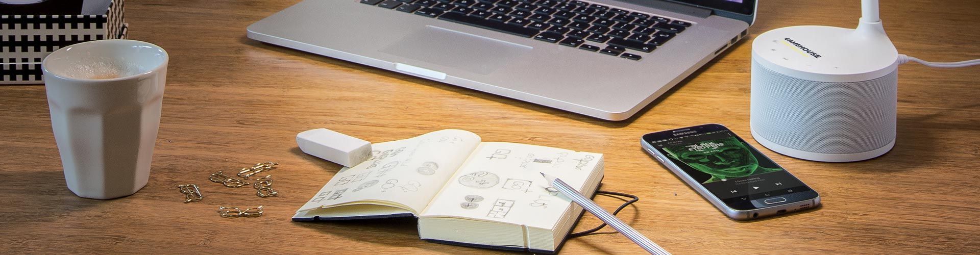Keep your desk free of clutter and cables by combining your charging station with this cleverly designed desk lamp and wireless speaker. A must for any Tech fan.
